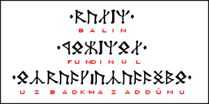 Dwarves first came to know the runes of the Noldor during the beginning of the Second Age. They modified them to suit the specific needs of their language, Khuzdul. The Dwarves spread their revised alphabet to Moria, where it came to be known as Angerthas Moria. The Dwarves developed both carved and pen-written forms of the runes. Travelling for trading, they spread their alphabet throughout Middle-earth: as a result, variations of Angerthas Moria were employed by other races for their languages.