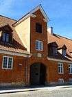The long main building facing the canal was originally designed by Jacob Fortling. shortly before his death in 1761, and subsequently completed by court architect Georg David Anthon, roughly to that design, in 1771.[1] The complex was used for the storing of materials and building parts and furnishings for the royal palaces and other buildings. The ring riding columns and marble balls in Rosenborg Castle Gardens are examples of artifacts at some point stored at Civiletatens Materialgård.[2][3]