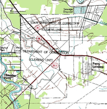 Clemens Unit (CN) is a prison farm of the Texas Department of Criminal Justice (TDCJ) in unincorporated Brazoria County, Texas in Greater Houston. The prison, with about 8,008 square feet (744.0 m2), is located at the intersection of Farm to Market Road 2004 and Texas State Highway 36.[1] The prison, in the Texas Gulf Coast region,[2] is in proximity to the City of Brazoria,[3] and it is in proximity to the Velasco community, now a part of Freeport.[4] The prison is situated south of Houston.[2]