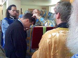 Clerical tonsure is the equivalent of the "first tonsure" in the Latin church. It is done immediately prior to ordination to the minor order of reader but is not repeated at subsequent ordinations.[11] This led to a once common usage that one was, for instance, "tonsured a reader", although technically the tonsure occurs prior to the prayer of ordination within the ordination rite.