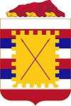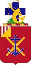 Coats of arms of US Air Defense Artillery regiments are heraldic emblems associated with Field artillery, Air Defense Artillery, and coast artillery regiments in the US Army. Under Army Regulation 840-10, each regiment and separate table of organization and equipment (TOE) battalion of the US Army is authorized a coat of arms to be displayed on the organization's flag, called the "colors."[1] This coat of arms usually forms the basis for the unit's distinctive unit insignia (DUI), the emblem worn by all members of the unit on their service uniforms.[2]