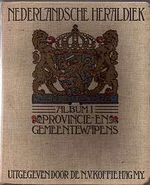 The second series were issued between 1931 and 1935 as Nederlandsche Heraldiek and showed the arms of new or changed municipal arms, new and changed arms in Netherlands East Indies, the arms of the water boards, the officially registered arms of Houses, Castles, Estates and similar, the arms of former municipalities and two series of personal arms. These personal arms were of important Dutch and foreign families and persons during the 80-years war of independence (1568–1648) of the Netherlands against Spain. The total number of arms issued was 841.[8]
