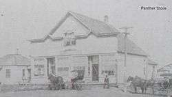 About 1934 John and Mart Sheaffer bought up all of the Co-operative association and became full owners of Panther Store. Rooms above the store, served as living quarters for the manager. The store became a popular place for farmers to congregate. On Saturday afternoons and on rainy days, the hitching racks filled up with teams as folks came for supplies. They bought groceries, dry goods, shoes, tobacco, kerosene, men's overalls and shirts, mittens, canned goods, shucking pegs, ammunition, and candy. Panther served as a produce store, buying poultry, eggs, cream, and butter. They took orders for buggy's, wagons, a variety of farm machinery, fencing materials, and furniture. These orders were shipped to Dallas Center and then hauled out by teams. When cars and trucks came more into use, they were used, instead of horse-drawn wagons to bring supplies from Des Moines. Motorized travel made it necessary to install a gasoline pump.[3]