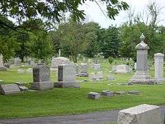 The Columbia Cemetery in Columbia, Missouri has been in use as a cemetery since 1820.[2] The cemetery historically contains Caucasian, African-American, and Jewish (Beth Olem Cemetery, Beth Shalom Cemetery) sections. Located in the cemetery are a vernacular stone receiving vault (1887), and a Romanesque Revival style mausoleum (1911).[3]