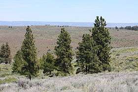 The Columbia Plateau ecoregion is a Level III ecoregion designated by the United States Environmental Protection Agency (EPA) in the U.S. states of Oregon and Washington, with small areas over the Washington state border in Idaho. The ecoregion extends across a wide swath of the Columbia River Basin from The Dalles, Oregon to Lewiston, Idaho to Okanogan, Washington near the Canada–US border. It includes nearly 500 miles (800 km) of the Columbia River, as well as the lower reaches of major tributaries such as the Snake and Yakima rivers and the associated drainage basins. It is named for the Columbia River Plateau, a flood basalt plateau formed by the Columbia River Basalt Group during the late Miocene and early Pliocene. The arid sagebrush steppe and grasslands of the region are flanked by moister, predominantly forested, mountainous ecoregions on all sides. The underlying basalt is up to 2 miles (3 km) thick and partially covered by thick loess desposits.[1] Where precipitation amounts are sufficient, the deep loess soils have been extensively cultivated for wheat. Water from the Columbia River is subject to resource allocation debates involving fisheries, navigation, hydropower, recreation, and irrigation, and the Columbia Basin Project has dramatically converted much of the region to agricultural use.[1][2][3]