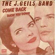 "Come Back" is a song written by Seth Justman and Peter Wolf that was first released by The J. Geils Band on their 1980 album Love Stinks. "Come Back" was the first single released from the album, and reached the US Top 40, peaking at #32 and remaining in the Top 40 for five weeks.[1][2] It peaked at #24 for three weeks in Canada.[3] It also made Billboard's Club Play Singles chart, peaking at #69.[1] The song remains in the rotation of classic rock radio stations.[4]