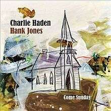 Come Sunday is a 2012 studio album of Christian hymns and spirituals by the jazz double bassist Charlie Haden and the pianist Hank Jones. It was recorded only a few months before Jones's death in May 2010.[1] It was Haden and Jones's second album in this vein since 1994's Steal Away. Come Sunday peaked at number 4 on the Billboard Top Jazz Albums chart, 10 on the Billboard Top Christian Albums Chart and at 6 on Billboard Top Gospel Albums Chart.[2]