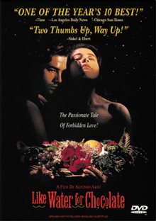 Like Water for Chocolate (Spanish: Como Agua Para Chocolate) is a 1992 Mexican film in the style of magical realism based on the popular novel, published in 1989 by first-time Mexican novelist Laura Esquivel.[2] It earned ten Ariel Awards including the Best Picture and was nominated for a Golden Globe Award for Best Foreign Language Film. The film became the highest grossing Spanish-language film ever released in the United States at the time.[3] The film was selected as the Mexican entry for the Best Foreign Language Film at the 65th Academy Awards, but was not accepted as a nominee.[4][5]