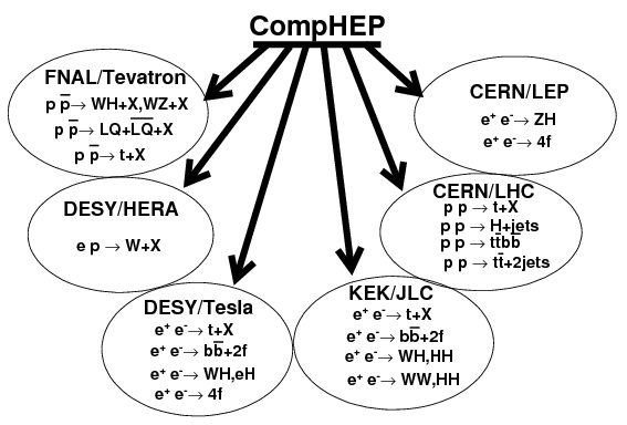 The CompHEP project started in 1989 in Skobeltsyn Institute of Nuclear Physics (SINP) of Moscow State University. During the 90’s this package was developed, and now it is a powerful tool for automatic computations of collision processes. The CompHEP program has been used in the past for lots of different studies in many experimental groups as shown schematically in the scheme