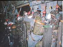 Throughout the Cold War, many National Guard and Reserve forces were poorly equipped in comparison to the active component, however, Company F, given its importance as a long-range reconnaissance/Ranger unit was much better equipped than most. It was one of the first National Guard units to receive M16 rifles and M1956 equipment even before some active units. The unit was also historically equipped with the most modern communications equipment. As an airborne unit, Company F made use of T-10 static-line parachutes which is primarily used for jumps by the active military, allied military forces, as well as the Michigan Army and Air National Guard from UH-60 Blackhawks, CH-47 Chinooks, and C-130 Hercules transports. In the past, the unit also jumped from such aircraft such as the UH-1 Iroquois (Huey), C-123 Provider and the C-119 Flying Boxcar. In recent years the unit was equipped with the following weapons: the 5.56mm M4 carbine, the 5.56mm M249 Squad Automatic Weapon, the 40mm M203 grenade launcher, and the 9mm M9 pistol, consistent with active combat arms units of the U.S. Army.[2]