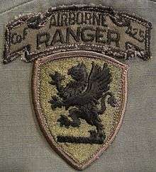 Company F, 425th Infantry was a long range surveillance unit of the Michigan National Guard that was inactivated on 12 June 2011. The company came into being in the mid-1960s when the 1st Battalion (Airborne), 225th Infantry was reflagged as Companies E and F (Ranger), 425th Infantry, and organized as Ranger companies. During this period these two companies were assigned to division and higher level commands to perform long range reconnaissance patrol missions, as opposed to the Ranger companies of today which comprise the four battalions (this includes the Special Troops Battalion) of the 75th Ranger Regiment.[1] According to the United States Army Center of Military History, it was reorganized and redesignated as the 425th Infantry Detachment (LRS) effective 1 September 2008 and was relocated from the State of Michigan Pontiac Armory to the Selfridge Air National Guard Base near Mount Clemens, 15 miles northeast of Detroit.