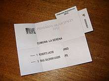Following the defeat of the Concertación in the 2009 presidential election, the left-wing parties' primaries were qualified as "defective and restricted."[3] The coalition, then, set the date of the municipal primaries to determine the candidates representing the political conglomerate in the elections of October 2012.