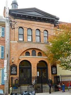 The building was purchased and converted to a synagogue in 1889. As a condition of the sale, the graves were moved from the cemetery and reinterred at Fernwood Cemetery.[2] In the fall of 1897, one of the first large Zionist meetings in the United States was held at Kesher Israel after Theodor Herzl convened the First Zionist Congress in Basle Switzerland. Kesher Israel became a central meeting hall for early Zionists in Philadelphia.