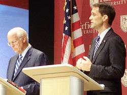 He received endorsements from the Fairfield Mirror,[3] Working Families Party,[9] DAPAC,[10] Students for a New American Politics PAC,[6] and Blue America PAC.[11] As of the end of 2007, his campaign reportedly had the most cash on hand of any House challenger running against an incumbent nationwide.[12] On May 4, 2008 Himes was endorsed by Diane Farrell, the 2004 and 2006 Democratic challenger to Christopher Shays.[13]