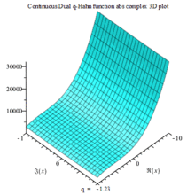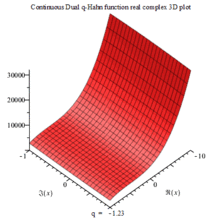 In mathematics, the continuous dual q-Hahn polynomials are a family of basic hypergeometric orthogonal polynomials in the basic Askey scheme. Roelof Koekoek, Peter A. Lesky, and René F. Swarttouw (2010, 14) give a detailed list of their properties.
