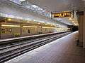 Conway Park is the newest station on the Wirral Line. In 1990, the Merseyside Development Corporation joined with British Rail and Merseyrail to study the cost of the new station.[1] The station opened to the public on 22 June 1998,[2] after an official opening by Neil Kinnock on 24 April 1998.[3][4] Conway Park is between Birkenhead Park and Hamilton Square stations, approached on either side by a tunnel built by the Mersey Railway in the 1880s. It was built by excavating a box downwards, opening out the roof of the tunnel, which is 18 m (59 ft) below ground level. The platforms are reached by stairs or lifts from the ticket office.[5]