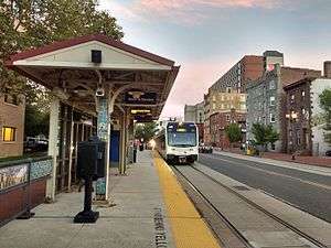 Cooper Street/Rutgers University is a station on the River Line light rail system, located on Cooper Street in Camden, New Jersey, near the Rutgers–Camden campus. The southbound (westbound) platform is located west of 2nd Street while the northbound (eastbound) platform is east of 2nd Street in the Cooper Grant neighborhood.