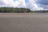 Waters of the park are calm and rich in biodiversity. Cano Island Biological Reserve is one of featured reserves along the coasts. These coasts, such as at Drake Bay, are wintering and breeding grounds for the humpback whales that come each winter. Ballena National Marine Park is specially designed for this species. Other baleen whales also migrate through the area such as Bryde's whale.[1] Dolphins such as spinner and rough-toothed, and smaller cetaceans such as false killer whales and killer whales are seasonal residents/migrants to these areas.[2] Whale watchings for these species are also available. Manatees have been hunted historically in Costa Rica, resulting in today's small numbers left. These gentle mammals can be observed occasionally at areas like Manzanillo Beach, Talamanca, and Limon.