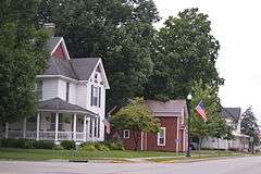 Covington Residential Historic District is a national historic district located at Covington, Fountain County, Indiana. The district encompasses 109 contributing buildings in a predominantly residential section of Covington. It developed between about 1830 and 1958, and includes notable examples of Gothic Revival, Federal, Greek Revival, Italianate, Queen Anne, and Colonial Revival style architecture. Located in the district are the separately listed Carnegie Library of Covington, Fountain County Clerk's Building, and William C.B. Sewell House. Other notable contributing buildings include the Senator Daniel W. Voorhees House (c. 1880), Ward House (c. 1890), Kid & Mary DeHaven House (1880), Bisland House (1910), Spinning House (c. 1898), Mayer House (1907), Johnson House (c. 1915), Ristine-Savage House (1852), J. D. Fine Boggs House (1923-1924, Livengood House (c. 1930), Enos H. Nebecker House (1894), Hamilton-Reed House (c. 1835, 1886), Covington Methodist Church (1889), Clark House (c. 1865), and Allen-Cates House (c. 1870).[2]