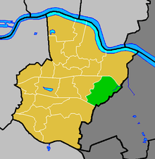 There were two main Manor Houses in the area during the Middle Ages, Newbery Manor on the site of what is now Crayford Manor House, and Howbury Manor next to Slade Green. Roger Apylton had served Kings Henry V and Henry VI as auditor, and resided at Marshalls Court, Crayford. Late in the reign of Elizabeth I Henry Partich sold Newbery Manor to Henry Apylton of Marshalls Court, and Apylton built May Place close by.[6][7] Hall Place, which lies alongside the River Cray, was built for Lord Mayor of the City of London Sir John Champneis in around 1537.[8] There was also an Iron Mill, which was later replaced by a saw mill (in 1765),[2] which produced the timber for the floor of Buckingham Palace.[5] In 1551 Francis Goldsmith bought a 'Great tenement called The Place' next to the bridge in Crayford, and between 1556 and 1586 purchased substantial amounts of local farmland and the Old Bell Public House.[9]