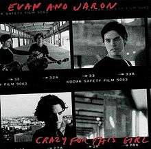 "Crazy for This Girl" is a song recorded by the American pop rock duo Evan and Jaron. It was the released in October 2000 as a single from their album, Evan and Jaron. It peaked at number 15 on the US Billboard Hot 100, and number 9 on the Pop Songs chart. The song was also included in the second volume on the soundtrack of The WB's television drama Dawson's Creek.