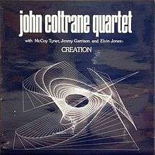 Creation is a 1965 album by jazz musician John Coltrane. The 1965 tracks - "Impressions" and "Creation" - were recorded at the Half Note Cafe, New York. "Alabama" was recorded in San Francisco a year before. "Creation" may be incorrectly titled - the title was drawn from a bootleg album. This is the only known recording of the tune. An abbreviated version of the same performance has appeared on several compilation albums (e.g. "Kind Of Coltrane").