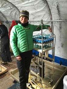 Takacs-Vesbach’s contributions to Antarctic science have been in the field of microbial ecology.[4] Until her doctoral research on bacterioplankton biomass and productivity in the lakes of the McMurdo Dry Valleys, Antarctica, bacterioplankton were considered unimportant. She used a forward difference model to show that not only are bacteria significant to the biomass of these lakes, but that substantial predation occurs every season to reduce bacterial biomass by up to 88% at the height of the growing season. Further work by Takacs-Vesbach in this system included estimates of bacterioplankton organic carbon demand and respiration rates. Takacs-Vesbach also contributed to the description of the first microbiological study of sub-glacial Lake Vostok. Along with her colleagues, Takacs-Vesbach reported the presence and activity of bacteria associated with the accretion ice >4 km below the surface of the Antarctic polar plateau. This provided evidence that life may exist in inhospitable settings, which opened the possibility that other planetary bodies, such as Europa or Enceladus, may harbor life today.[5] It is only in the past few years that Lake Vostok and other similar subglacial lakes finally have been sampled, confirming the initial findings of Takacs-Vesbach and her colleagues that life can exist in the deep icy subsurface of Antarctica.[5][6]