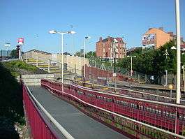 Northward view from the exit of Platform 1, showing the rebuilt (2006) overbridge | |