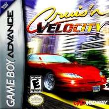 Cruis'n Velocity is a racing game and the fourth game in the Cruis'n series. The game was developed by Graphic State Games and released by Midway for the Game Boy Advance in 2001. It is the only game in the series not to be preceded by an arcade release and features slightly different gameplay from its predecessors. The game uses the same engine as Dark Arena, a first-person shooter game also developed by Graphic State, to achieve a pseudo-3D effect. This approach garnered the game mixed reviews.