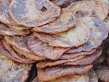 Telangana in its cuisine, there is special place for roti's made from millets, such as jonna rotte (sorghum), sajja rotte (penisetum), or Uppudi Pindi (broken rice). In Telangana a gravy or curry is called Koora and Pulusu (Sour) in based on Tamarind. A deep fry reduction of the same is called Vepudu. Kodi pulusu and Mamsam (meat) vepudu are popular dishes in meat. Vankaya Brinjal Pulusu or Vepudu, Arintikaya Banana pulusu or Vepudu are one of the many varieties of vegetable dishes.[1] Telangana palakoora is a spinach dish cooked with lentils eaten with steamed rice and rotis. Peanuts are added as special attraction and in Karimnagar District, cashew nuts are added.