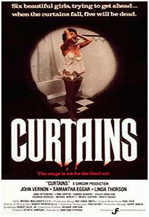 Curtains is a 1983 Canadian horror film directed by Richard Ciupka, written by Robert Guza Jr., and starring John Vernon, Samantha Eggar, Linda Thorson and Lynne Griffin. A slasher film and a narrative about theater and filmmaking,[2] the plot focuses on a group of actresses targeted by a masked killer at a prestigious director's remote mansion where they are auditioning for a role in a movie.