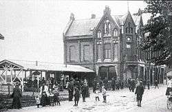 In order to cut down on seedy bars and liquor stores, the Norwegian parliament passed a law in 1871 that gave local governments permission to establish an organization ("samlag") with exclusive rights to sell and serve liquors in a municipality. The idea of having a government-sanctioned monopoly of alcohol sales in a city was inspired by the Swedish system and was a precursor to the modern Vinmonopolet, with the difference being that most of the profits went to local governments rather than the state government.[1][4] In the spring of 1873, Porsgrunds Brændevinssamlag was created to capitalize on the new law, and in 1887 they received a licence to become the sole alcoholic beverage retailer in Porsgrunn.[5] The samlag was very successful, and over the 24 years that it was in operation, it raised a total of 105,000 kroner for the city.[1] The profits went towards road maintenance, social services, and above all, construction, funding in part the construction of a local library, swimming hall, and rail line between Porsgrunn and Larvik.[2][6]