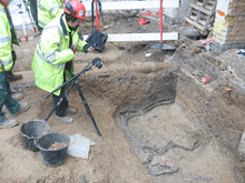 In archaeology and archaeological stratification a cut or truncation is a context that represents a moment in time when other archaeological deposits were removed for the creation of some feature such as a ditch or pit. In laymans terms a cut can be thought of a hole that was dug in the past, though cut also applies to other parts of the archaeological record such as horizontal truncations like terraced ground. A cut context is sometimes referred to as a "negative context" as opposed to a "positive context". The term denotes that a cut has removed material from the archaeological record or natural at the time of its creation as opposed to a positive context which adds material to the archaeological record. A cut has zero thickness and no material properties of its own and is defined by the limits of other contexts. Cuts are seen in the record by virtue of the difference between the material it was cut through and the material that back fills it. This difference is seen as an "edge" by the archaeologists on site. This is shown in the picture above (Fig 1.), where a half sectioned Saxon pit has had half its backfill removed and we can clearly see a difference between the ground the pit was cut into and the material originally filling the pit . Sometimes these differences are not clear and an archaeologist must rely on experience and insight to discover cuts.