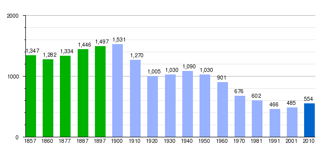 As on 1 January 2010 the population of the town was 554 inhabitants, 292 males and 262 females.[2]