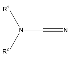 Cyanimides are a group of chemical compounds sharing a common functional group with the general structure R1R2N-CN. This group can be regarded as a secondary amine with a cyano substituent.