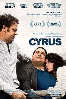 Cyrus is a 2010 comedy-drama film written and directed by brothers Jay and Mark Duplass and starring John C. Reilly, Jonah Hill, Marisa Tomei, and Catherine Keener.