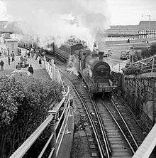 The station was the southern terminus of the Dublin and Kingstown Railway and opened in 1834.[1] It replaced the original Kingstown Harbour station at the West Pier, close to present-day Salthill and Monkstown railway station, when the line was extended closer to the harbour two years after the opening of the line, the delay being a result of local opposition in Kingstown.[2]
