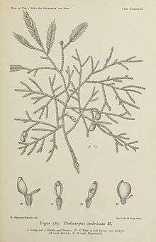 - ↑ Liguo Fu; Yong Li & Robert R. Mill. "Dacrycarpus imbricatus". Flora of China. Missouri Botanical Garden, St. Louis, MO & Harvard University Herbaria, Cambridge, MA. Retrieved 20 April 2012.