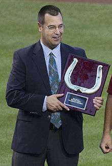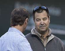 After college, Duquette's baseball coach, Bill Thurston, recommended him to Harry Dalton, a fellow Amherst alumnus and General Manager of the Milwaukee Brewers. Duquette became a scouting assistant for the Brewers and worked in the scouting department for 7 years.[6][7] In 1987, he was hired by the Montreal Expos as the Director of Player Development. He spent a few years in that position before being promoted to Vice President and General Manager in 1991 (taking over for the departing Dave Dombrowski). Over the course of his six years with the Expos, Duquette had a hand in drafting players like Rondell White, Marquis Grissom, Cliff Floyd, Jose Vidro, Kirk Reuter, Javier Vasquez, and many more Major League players. He also signed players like Vladimir Guerrero, John Wetteland, and Larry Walker.[7][8] In November 1993, Duquette traded second baseman Delino DeShields for Pedro Martinez of the Los Angeles Dodgers. The Expos were competitive from 1992 to 1994, and they had attained the best record in baseball prior to the 1994–95 Major League Baseball strike that ended the season prematurely.[6]