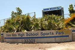 Dana Hills High School is a high school in Dana Point, California. It is one of the oldest high schools in South Orange County, having opened in 1973. The school's enrollment of nearly 3,000 students is drawn from the nearby communities of Laguna Niguel, Dana Point, Capistrano Beach, and San Juan Capistrano.