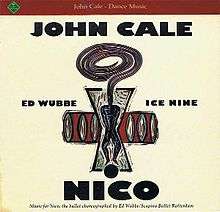 Dance Music is the soundtrack album by Welsh multi-instrumentalist and composer John Cale. It was released in 1998 on Detour Records label.[2] It was produced by Cale and his then collaborator Jean-Michel Reusser. It is original music score for Ed Wubbe's ballet about Cale's long-time collaborator Nico. Most of the songs was performed by Dutch group Ice Nine (except "Ari Sleepy Too" and "Nibelungen" by Nico and "España" by Cale on piano).