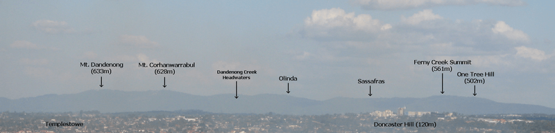Left - Mount Dandenong and right - Mount Corhanwarrabul, viewed from Mooroolbark | |