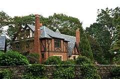The Day Estate Historic District encompasses part of a subdivided estate at the corner of Commonwealth Avenue and Dartmouth Street in Newton, Massachusetts. The district is bounded by Commonwealth, Dartmouth, Chestnut, and Prince Streets, and includes six houses located on Commonwealth and Dartmouth. It was originally owned by Henry Day, a banker, who in 1896 built the house at 321 Chestnut Street. They subdivided the block during a building boom in the 1920s, and the new houses were built between 1928 and 1930. All six houses are high quality Tudor Revival structures, five of them designed by William J. Freethey. Day's estate house (not a part of the district) is now home to the All Newton Music School, and the rest of the northeastern portion of the estate has more modern construction.[2] The district was listed on the National Register of Historic Places in 1990.[1]