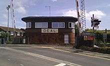 Deal was originally the terminus of a South Eastern Railway branch line from Minster Junction through Sandwich and opened on 1 July 1847. This meant the original services to London ran via Canterbury, Ashford, Tonbridge, Redhill and Croydon to London Bridge. Local sources say Charles Dickens attended the celebrations that accompanied the opening of the line.[1] The link south to Dover was delayed by commercial rivalry between the two Kent railway companies, the South Eastern Railway and the London, Chatham & Dover Railway. However, the companies finally agreed to build the line jointly and it opened on 15 June 1881.[2]