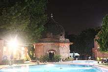 The original course, called the Lodhi Golf Club, laid out in the 1930s by the then Chief of the Horticultural Department, was much larger than the present walled area, and included parts of present Golf Links and Kaka Nagar.[2] The Lodhi Golf Club, however, had few members, and was barely sustainable, except for a brief period during the Second World War when Delhi was awash with Allied officers who patronized the club. In 1948, the club had eighty members, and in 1951, when it became the Delhi Golf Club (DGC), its membership was no more than 120, and was barely sustainable.[2] The Club was saved from dissolution by Indian officers belonging to the Indian Civil Service, including Dharma Vira, founder member of the DGC, who petitioned Prime Minister Nehru to lease the government land to the club at a low annual rent for thirty years. Since that time, the Government of India has favored the DGC with very permissive lease terms and low annual rents that have no relationship to the actual value of the land. The DGC has evolved as a favorite watering hole for senior Civil Servants, Police Officers and the business and social elite.[2][3] The walled area of the club includes a large number of interesting Mughal archeological remains such as the famous Lal Bangla.[4]