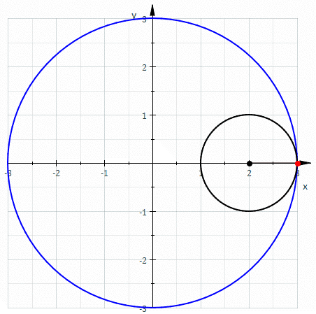 where a is the radius of the rolling circle, b is the radius of the circle within which the aforementioned circle is rolling. (In the illustration above b = 3a.)