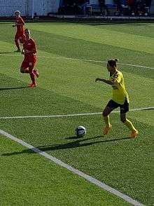 Demet Kılınç (yellow/black) driving the ball for Gazikentspor in the 2014–15 season's away match against Ataşehir Belediyespor.