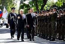 Christofias was sworn in as President at a ceremony in the House of Representatives on 28 February 2008, vowing that "the solution of the Cyprus problem will be the top priority of my government".[11] Although proud to be a communist, he said he would leave the free market economy alone.[12] While much of the focus beyond Cyprus was on Christofias's communist background and education in Moscow, on the island voters were more concerned with a solution to Europe's longest running conflict—the island's partition since 1974.[13]