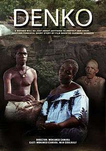 Denko is a 1993 short drama film directed by Guinean film maker Mohamed Camara. The story involves incest between a mother and son.[2] The film won the Grand Prix at the Clermont-Ferrand International Short Film Festival,[3] the award for Best Short film at the Fribourg International Film Festival and the Golden Danzante award at the Huesca Film Festival.[4]