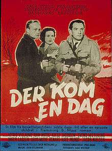 Der kom en dag (English: There Came One Day) is a 1955 Danish dramatic film directed by Sven Methling and produced by John Olsen at Saga Studio. Co-written by Olsen and Flemming B. Muus, the film was based on a true story as told in Muus' novel of the same name. The movie starred John Wittig, Kjeld Jacobsen and Astrid Villaume as Danish resistance fighters during the last days of the German occupation of Denmark in World War II. It won the 1955 Bodil Award for Best Danish Film (in a tie with Carl Th. Dreyer's Ordet).